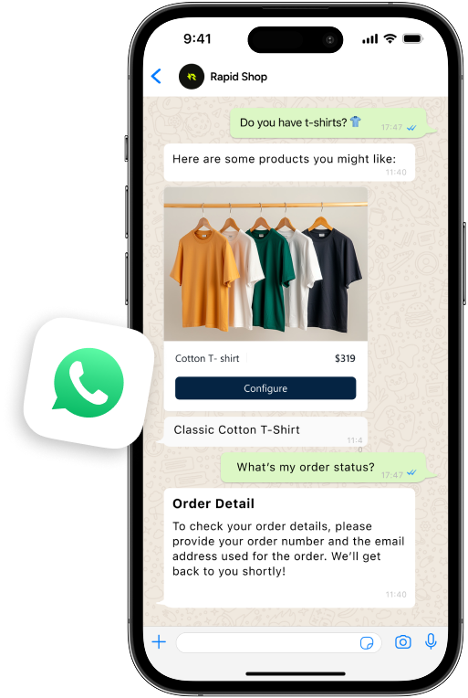 Turn the world's most popular messaging platform into your 24/7 sales and support channel. With Aisk's WhatsApp integration, customers can browse products, check order status, and get instant support using the app they already check 50+ times daily.