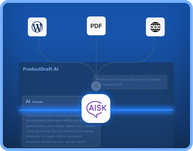 Empower your chatbot with comprehensive knowledge from any source. Aisk intelligently processes your content to deliver accurate, helpful answers to customer questions across all communication channels.