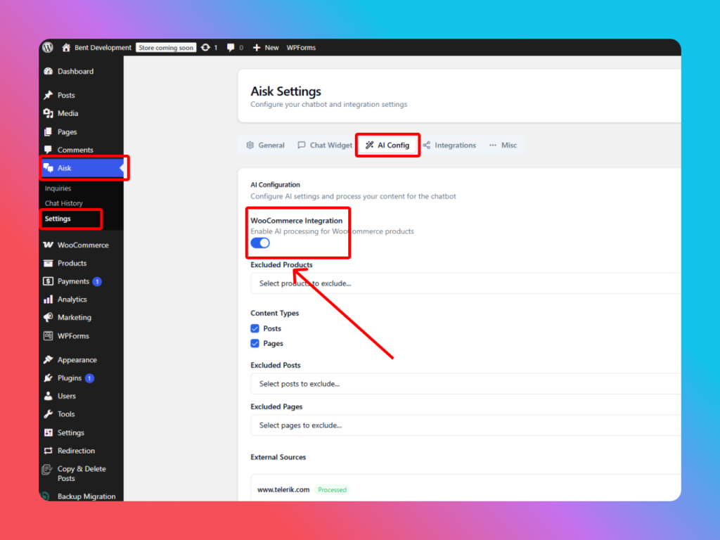 - Enable AI processing for WooCommerce products “WooCommerce Integration”